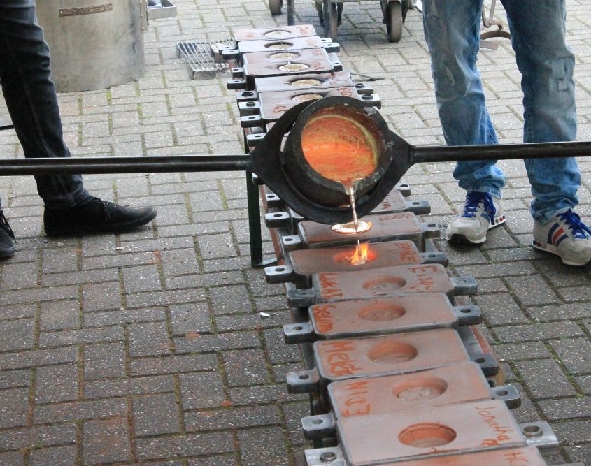 Onder leiding van de Duitse bronsgieter/ docent Volker Alexi mogen de leerlingen zelf een gietvorm maken die daarna met vloeibaar brons wordt gevuld. Dit is sensationeel omdat de leerlingen zo kunnen zien hoe vloeibaar metaal eruit ziet.