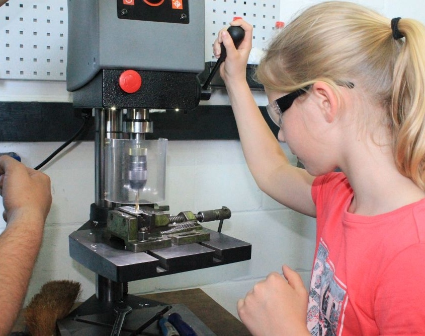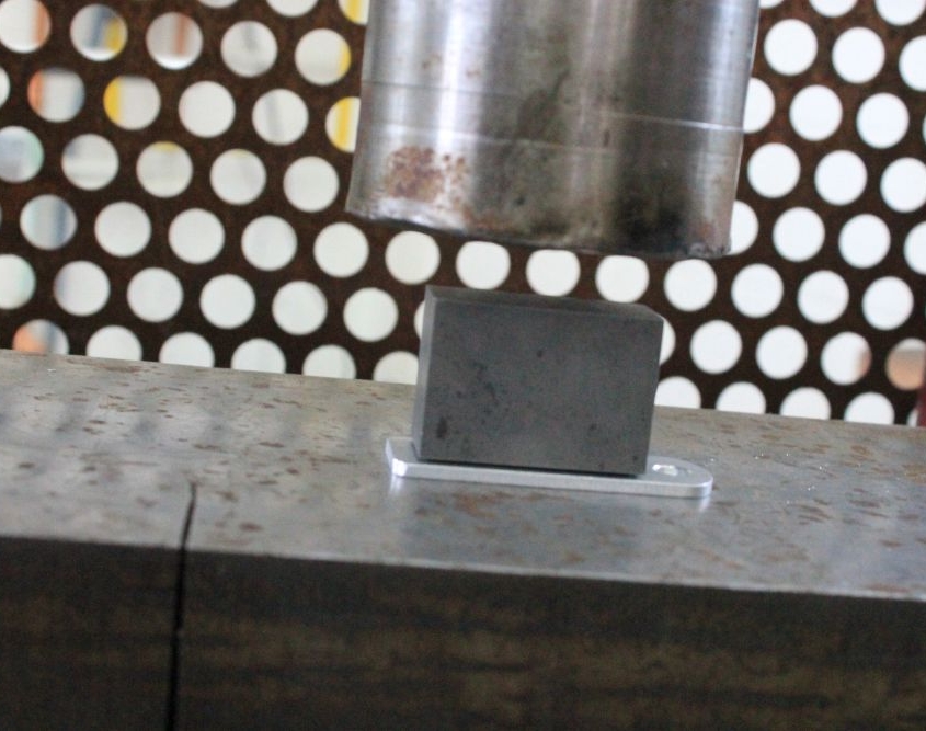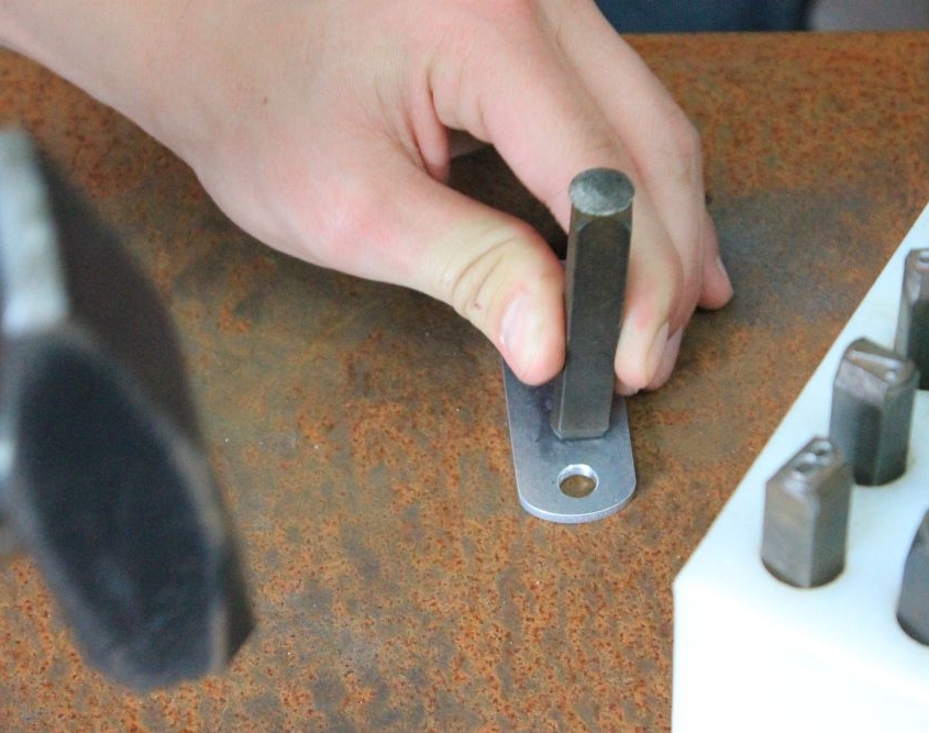Bij deze activiteit wordt gebruik gemaakt van een hydraulische pers, een boormachine, een hamer en slagletters.